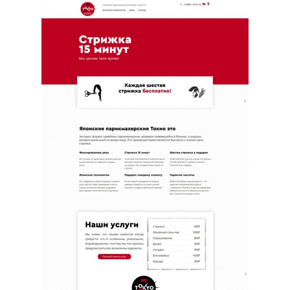 Сайт-лендинг сети парикмахерских Токио г.Москва от веб-студии Максвебсайт г. Ревда