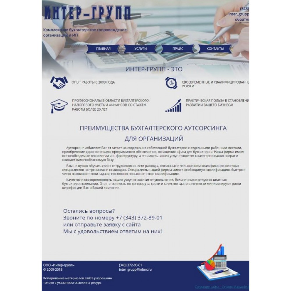 Сайт-визитка бухгалтерской компании г.Екатеринбург от веб-студии Максвебсайт г. Ревда