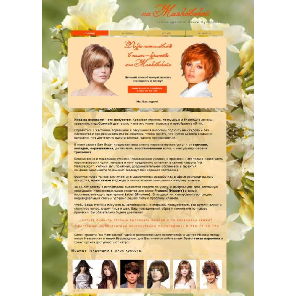 Сайт-визитка Салона красоты Ольги Кухаренко г.Москва от веб-студии Максвебсайт г. Ревда